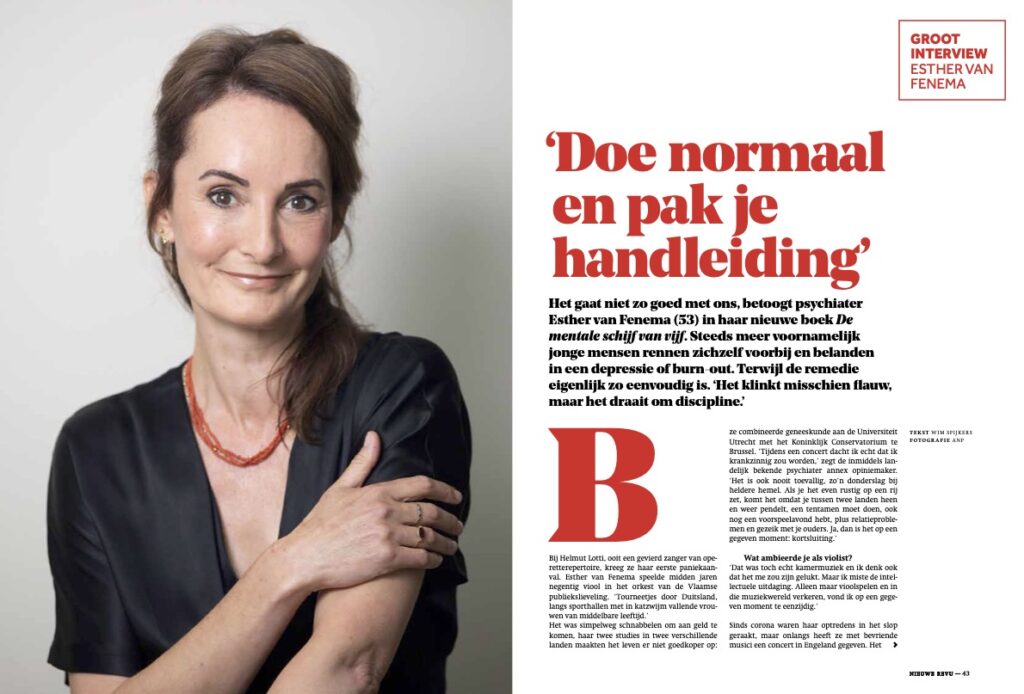 Ze is ook professioneel violiste, richtte een politieke partij op en beweegt zich moeiteloos in zowel linkse als uiterst rechtse kringen. Om maar eens wat te noemen. Esther van Fenema is, kortom, ’s lands kleurrijkste psychiater van het moment. En ook nog eens bloedserieus met haar vak bezig. Gepubliceerd in Nieuwe Revu.